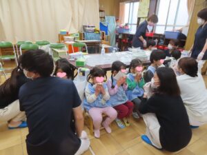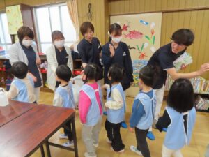 無事に終わって、もうすぐ卒園する園児たちとの集合写真です。