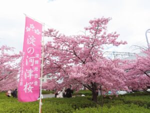 「淀の河津桜」という旗が、道案内をしてくれました。