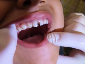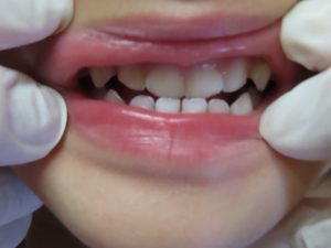 まだ2歳になっていないのに、歯が屏風のように歪んでいる「歯列不正」の児もいました。