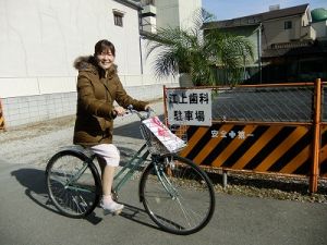 風も冷たく、足もとから冷えてくる感じがしました。でも、お昼近くになると、暖かい日差しになり、自転車に乗るのも苦にならないような気候になりました。郵便局や銀行に出かける用事がある時は、いつも受付スタッフの八木さんが、私の代わりに自転車で行ってくれます。今日も「江上歯科の郵便屋さん」は、軽快に走る、走る・・・