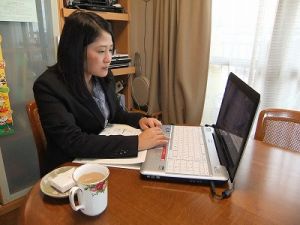 いよいよ、5月分のレセプトを、インターネットによる「オンライン請求」することになり、今日はそのシステムアップの為に浅野歯科産業の方が自宅に来られました。大阪府社会保険診療報酬基金から届いたシステムアップキットのCD−ROMを新しいWindows7のノートパソコンに読み込みます。操作手順とにらめっこしながら、池原さんが頑張っておられます。